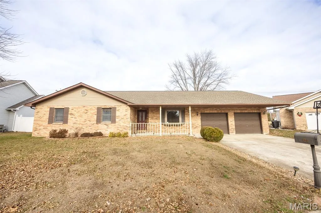 Welcome home to this beautifully updated and move-in ready property that combines comfort, style, and convenience! Updated throughout, this charming home features a remodeled kitchen with modern finishes, ample cabinet space, and room for casual dining in the bright eat-in area. Luxury vinyl plank flooring flows seamlessly throughout the entire home, creating a cohesive and elegant look. The inviting living room showcases a classic brick gas fireplace—perfect for relaxing evenings. The spacious primary suite boasts two walk-in closets and a luxurious en-suite bathroom with a double vanity. Two additional bedrooms and a beautifully appointed hall bath provide plenty of room for family or guests. Enjoy outdoor living on the covered front porch or in the private fenced backyard with a patio—ideal for gatherings or quiet mornings. The attached two-car garage includes a 10×9 workshop/storage area for added convenience. Located close to schools, parks, shopping, and Scott AFB, this home truly has it all! Buyer to verify all information.