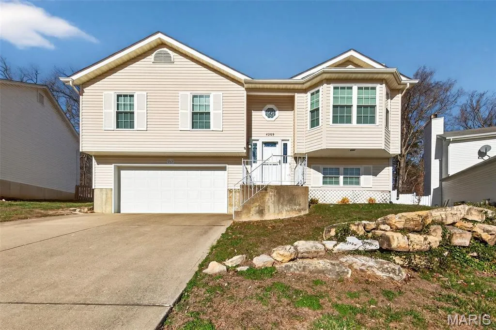 MOVE IN READY!!!! This freshly painted and well-maintained 3-bedroom, 2-bath home features an open floor plan with a full basement. The kitchen shows 42-inch cabinets, stainless steel appliances, granite countertops, and a pantry. Skylights in the living room fill the space with natural light, creating a cozy atmosphere by the wood-burning fireplace. The finished lower level offers flexible use as additional recreation space or a guest bedroom, with rough-in plumbing ready for a third full bath. Extra storage is available near the laundry area and under the stairs. The oversized 2-car garage provides room for hobbies, a workshop or more storage. The expansive, fully fenced backyard backs to peaceful woods—ideal for gatherings, gardening, or play. A wood deck spans the length of the house, with private access from the primary bedroom to a covered area perfect for enjoying the view. Don’t miss out on this one!