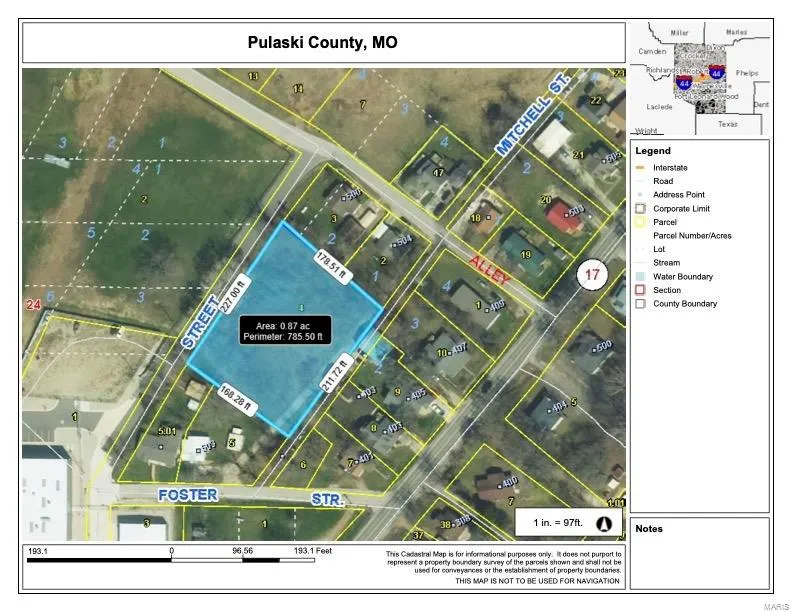 Oversized lot conveniently located near the Roubidoux park and downtown Waynesville. Close proximity to Fort Leonard Wood and 1-44, a great space to build your own home!